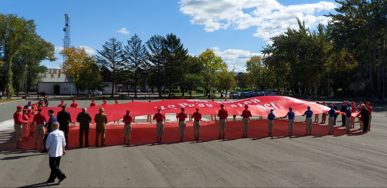 Завершилась официальная часть разворачиванием на центральной площади села Покровки огромного Знамени Победы. Этот символ победы стал ярким символом мероприятия, символизирующим преемственность поколений и гордость за страну.